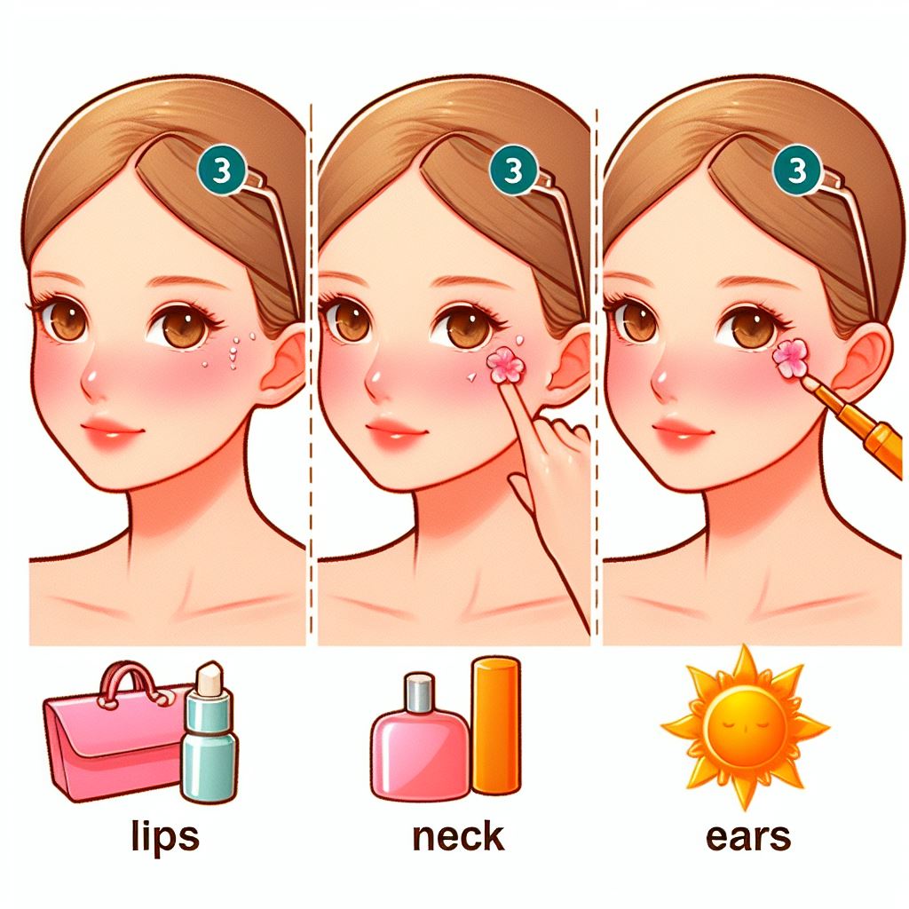 마무리하자면, 입술, 목, 귀와 같은 부위는 흔히 놓치기 쉬운 자외선 차단의 사각지대입니다. 이러한 부위에도 꼼꼼하게 선크림을 바르는 것은 햇볕 화상, 궤양, 피부 노화 등으로부터 피부를 보호하고, 장기적으로 피부암과 같은 심각한 질병으로부터 자신을 지키는 효과적인 방법입니다. 매일 자외선 차단제를 사용하는 습관은 피부를 건강하게 유지하는 데 있어 기본이 되며, 이러한 습관이 큰 보호 효과를 가져다줍니다. 야외 활동을 할 때 뿐만 아니라, 일상 생활에서도 반드시 선크림을 바르는 것을 잊지 않고, 자외선 차단제의 물리적인 차단 효과를 통하여 얼굴의 모든 부위를 철저히 보호해 주시길 바랍니다