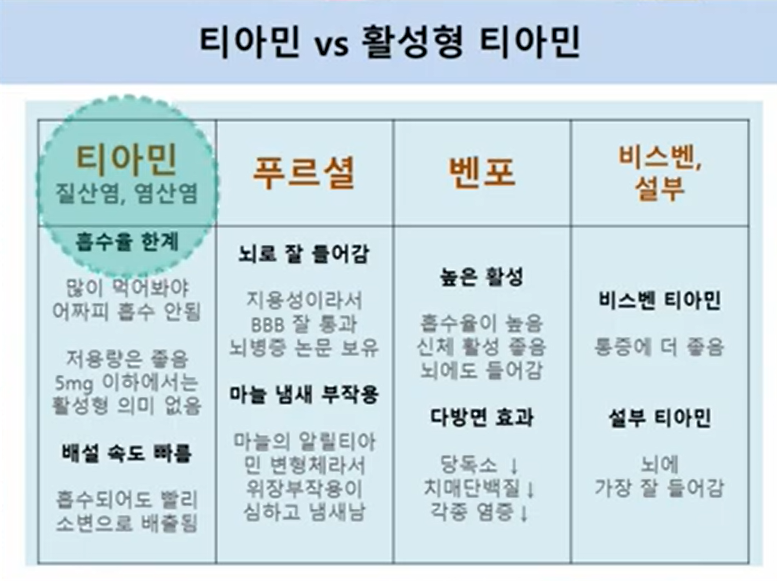 푸르설티아민 VS 벤포티아민 차이점